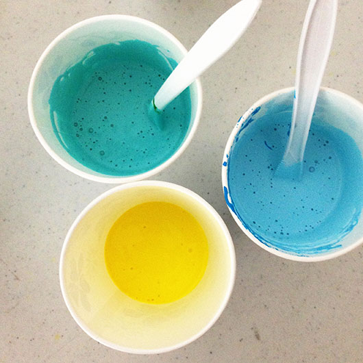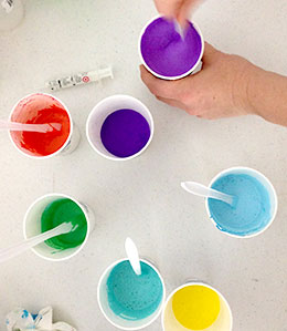 We worked with an artist who hand mixed dozens of different colors of tempera paint.
